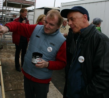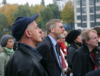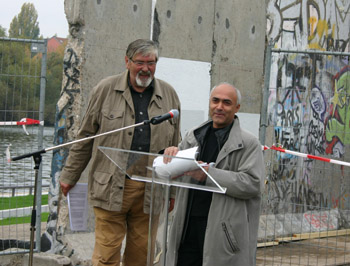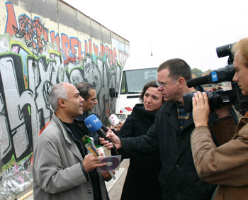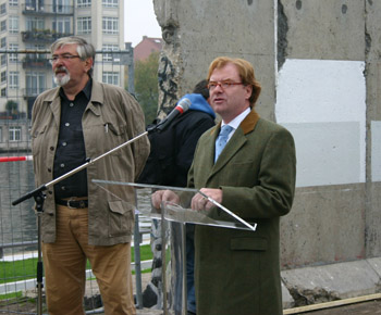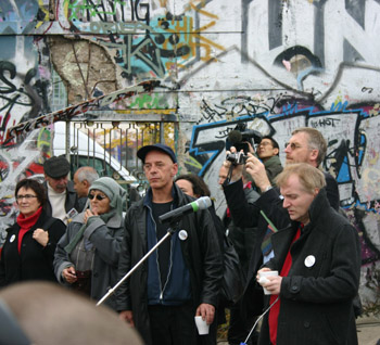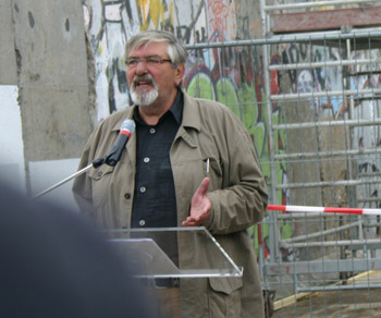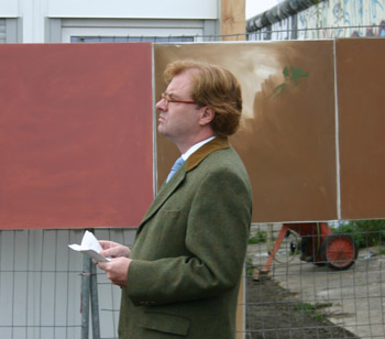 15.10.2008 10.30 - Es geht jetzt wirklich mit der Sanierung der gesamten East Side Gallery los. - Der Startschuss ist gefallen.